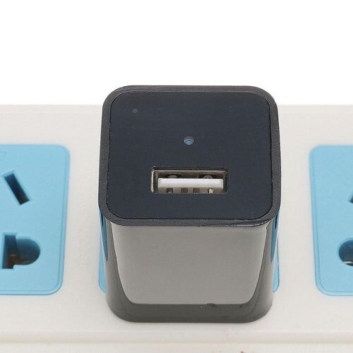 USB Charger Hidden Spy Camera with Built in DVR. In this age of electronics, everyone has a variety of adapters and chargers plugged into nearly every electrical outlet. No one will even pay attention to the USB charger hidden camera. It records in crisp clear 1920x1080p resolution at 30fps on a 32GB micro SD card which will store up to 7 hours of footage. This covert USB adapter is great for office security or a nanny cam at home. It is very easy to use and will do Loop or Motion Activated recordings. Easily connects to your computer to download and view video footage.